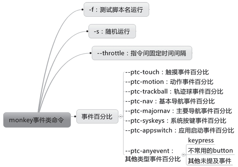 Monkey的option主要分为:常规类、事件类、约束类和调试类4种