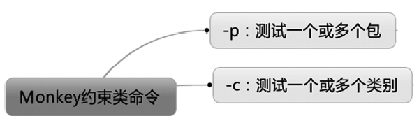 -p:后面接一个或多个包名,如果不指定任何包,monkey将允许系统启动全部包里的Activity。每个-p对应一个包,指定多个包时每个包名前都需要加上-p