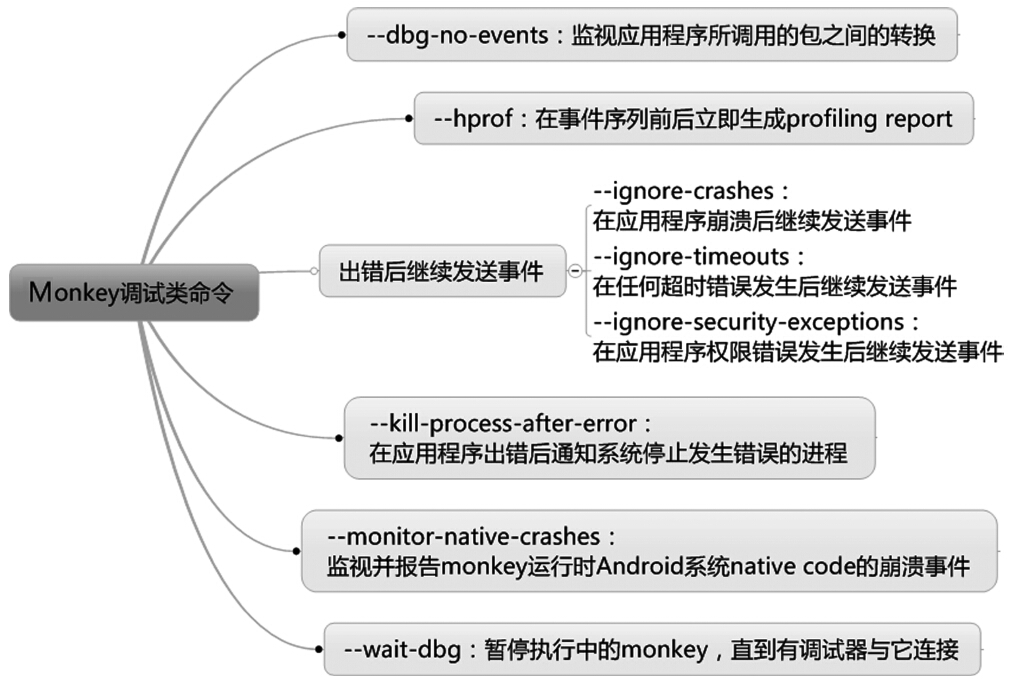 通过调试类命令可以对monkey进行简单的调试,这样可以快速定位monkey运行中的问题