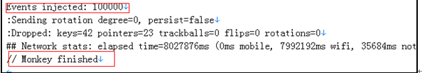 例:adb shell monkeyn 1000 发送1000个随机事件